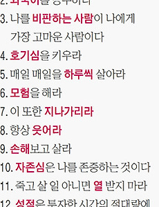 반응형 전체 글1202 故 강영우 박사님 - 마지막 편지 (친구, 아내, 아들들에게) 실명으로 누구보다 힘들었을 인생이 실명으로 누구보다 행복한 인생으로 바뀌다.무엇이 그런 차이를 만들었을까? ----------------------------------------------------------------------- (친구들에게) 즐거운 성탄과 2012년 복된 새해를 맞이 하시기를 기원합니다. 세월이 유수와 같다는 말이 실감나는 요즘입니다. 올해는 그 어떤 해보다 뜻 깊고 아름다운 한해였습니다. 50년전 서울 맹학교 학생이었던 저는 자원봉사자 여대생인 아내를 처음 만났습니다. 40년전 저는 그 예쁜 여대생 누나에게 함께 아름다운 세상을 만들자는 비젼이 담긴 이름 석자, “석.은.옥”을 선물하며 프로포즈를 했습니다. 제가 아내와 함께 유학생의 신분으로 미국에 온지도 30년을 훌쩍 넘어 .. 2012. 5. 7. 사진작가 박시호 공기업 대표였지만 현재는 사진작가와 행복 편지 발행인으로 살고 계시는 박시호 선생님의 강의를 들었다. 친구인 김중만 사진작가의 도움으로 한가지 목표(꽃)에 집중하여 자신만의작품세계를 만들었다. 또한 방문객들에게 웃음이 담긴 사진을 선물하여 잊지못할 선물을 주는 방법도 배웠다. 직선보다는 곡선이 더 아름다움을 가르쳐주신 스승이기도 하고좀 더 적은 것에 집중하여 프로가 되어야 한다는 깨달음을 주기도 하셨다. 2012. 4. 22. 사형수 도스토예프스키 도스토예프스키는 사형 당하기전 3분간의 시간처럼 나머지 인생을 살았다. 시간은 무한하면서도 유한하다. 죽음을 생각하면 더없이 소중한 것이 시간이다. 하루하루 보다 충실하게 채워넣자! 원문보기 http://blog.daum.net/_blog/BlogTypeView.do?blogid=09ogx&articleno=16518512#ajax_history_home 2012. 4. 22. CJ인재원 민희경 원장님 - 6명의 병사들이 죽어가면서까지 라이언 일병 1명을 구한 이유는?단, 1명이라도 우리(국가)는 구하러 가겠다! 끝까지! (돈이나 경제적인 측면에서는 이해할 수 없지만 그보다 더 큰 효과를 나타냄) - 죽을 때까지 전문성을 키워야 하며 첫번째가 외국어이다. (영어, 중국어!) 원문보기 http://news.khan.co.kr/kh_news/khan_art_view.html?artid=201104282123255&code=210000 2012. 4. 22. 이전 1 ··· 75 76 77 78 79 80 81 ··· 301 다음 반응형