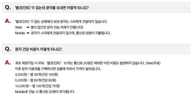 비활성화 원인 : 문자는 주고받아야 맛인데, 100원의 과금으로는 스타들이 문자 답장을