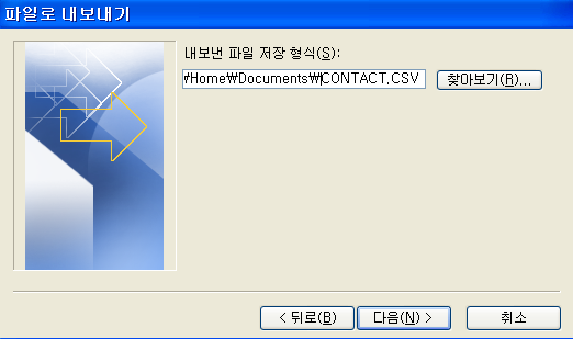 여기에서는 '내문서' 폴더내에 'CONTACT.CSV'라는 파일로 저장하였습니다.