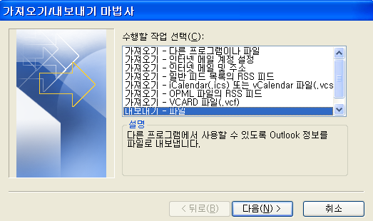 '내보내기 - 파일'을 선택한 후 '다음'버튼을 누릅니다.